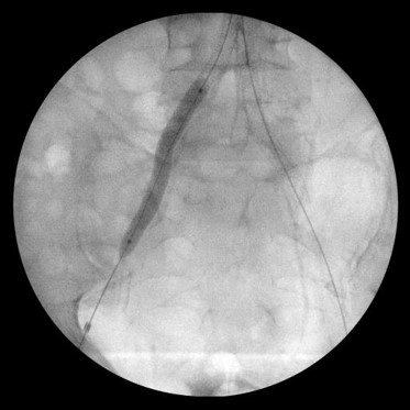 Эндоваскулярное лечение окклюзии инфраренального отдела брюшной аорты