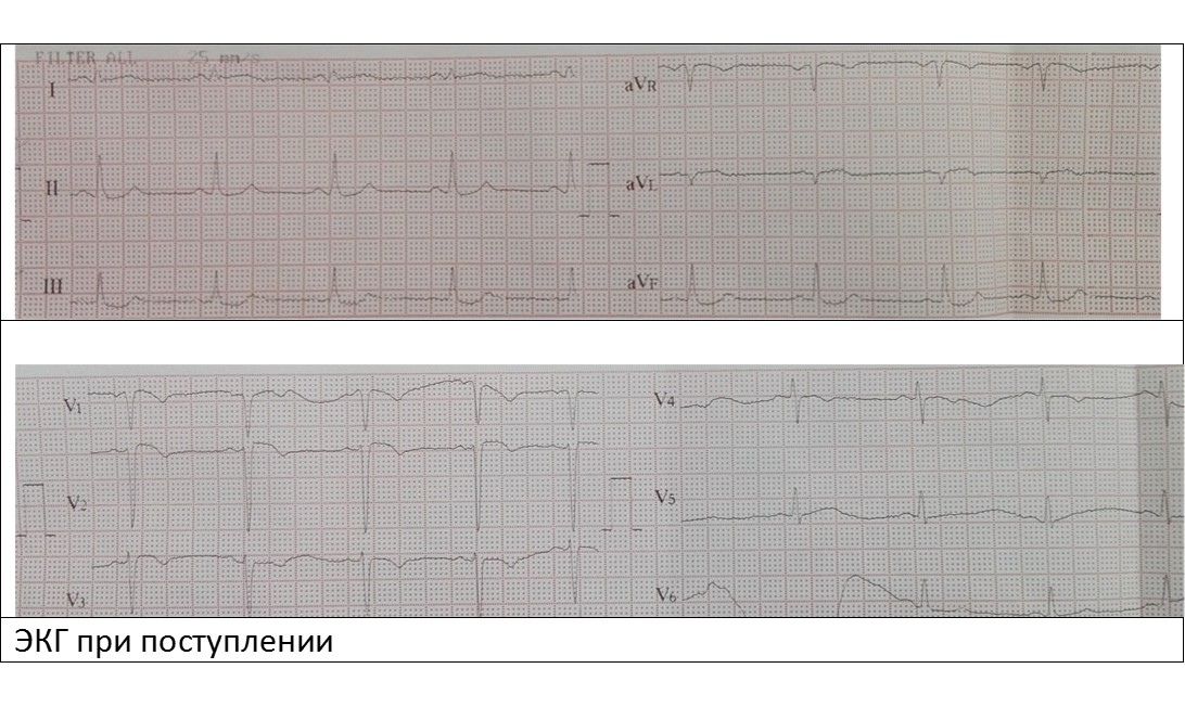 Диагноз при выписке: ИБС, о.,с подъемом ST Q-необразующий передне-боковой ИМ ЛЖ от 02.06.2016 (IV a тип). КАГ 02.06.2016, ЧТБА и стентирование ПМЖВ DES 02.06.2016, состояние после ЧКВ ОВ 07.2015.