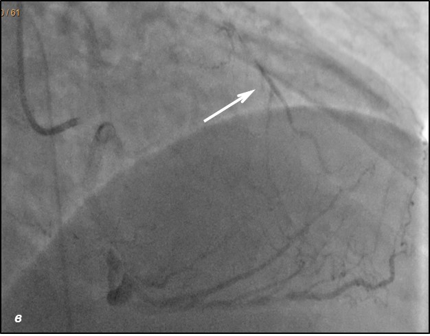 До проведения реваскуляризации миокарда пациент получал двойную антиагрегантную терапию (клопидогрел 75 мг, ацетилсалициловая кислота - 300 мг ежедневно). Чрескожное коронарное вмешательство было разделено на два этапа. Первым этапом – планировалось выполнить реканализацию и стентирование ПМЖВ, вторым – стентирование ПКА. Однако по данным повторной коронарографии было выявлено сужение тела ствола левой коронарной артерии (ЛКА) на 30%, окклюзия от устья передней межжелудочковой артерии (ПМЖВ), постокклюзионный сегмент заполнялся по слабым внутри- и межсистемным коллатералям, устьевое сужение огибающей артерии (ОВ) 60%, окклюзия средней трети правой коронарной артерии (ПКА), постокклюзионный сегмент заполнялся по внутрисистемным перетокам. Показатель Syntax Score для данного пациента составил 34.5. Учитывая, что по данным ранее выполненной коронарографии, правая коронарная артерия оставалась проходимой, а передняя межжелудочковая ветвь была окклюзирована и на момент реваскуляризации срок окклюзии составлял 7 лет, была проведена сменена тактики и первым этапом выполнена реканализация правой коронарной артерии, а спустя 2 суток – реканализация и стентирование передней межжелудочковой ветви от устья с баллонной ангиопластикой огибающей ветви (рис.1,2). Учитывая, что проводилась реканализация хронической окклюзии, в обе коронарные артерии были имплантированы стенты с лекарственным покрытием Resolute ONYX (Medtronic).